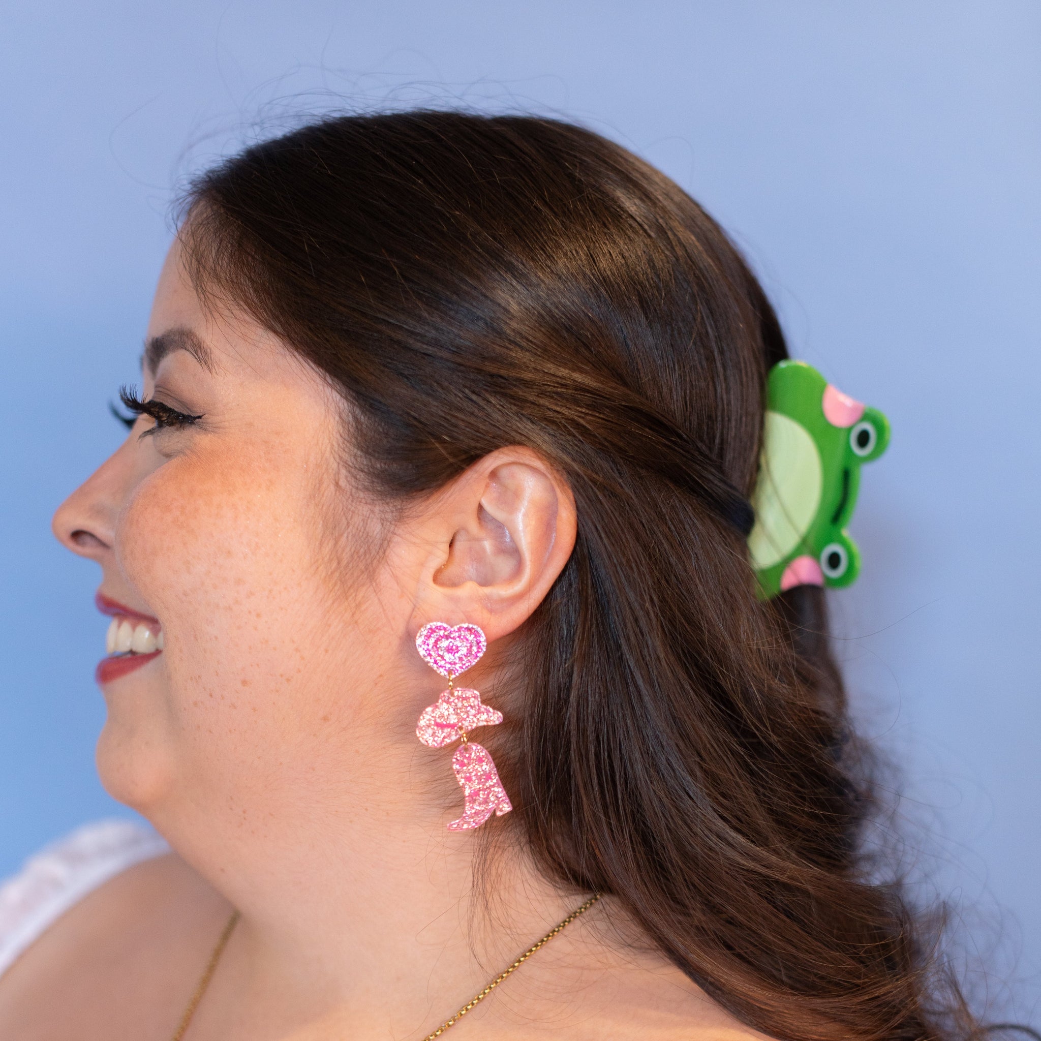 One ear’s ready to wrangle, the other’s ready to thrive. These mismatched desert-themed earrings blend cowgirl glam with playful western flair. They feature a pink cowgirl boot on one side and a blooming green cactus on the other—perfect for those who are equal parts sass and succulence. Whether you're headed to the desert or the dance floor, these earrings know how to kick up dust and make things grow.