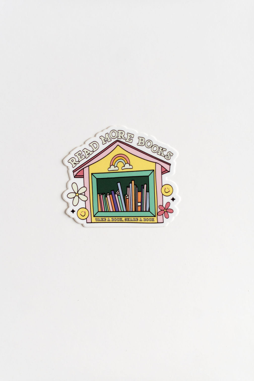 Little Library Read More Books Sticker | Glitter Vinyl Book Lover Laptop & Water Bottle Decal