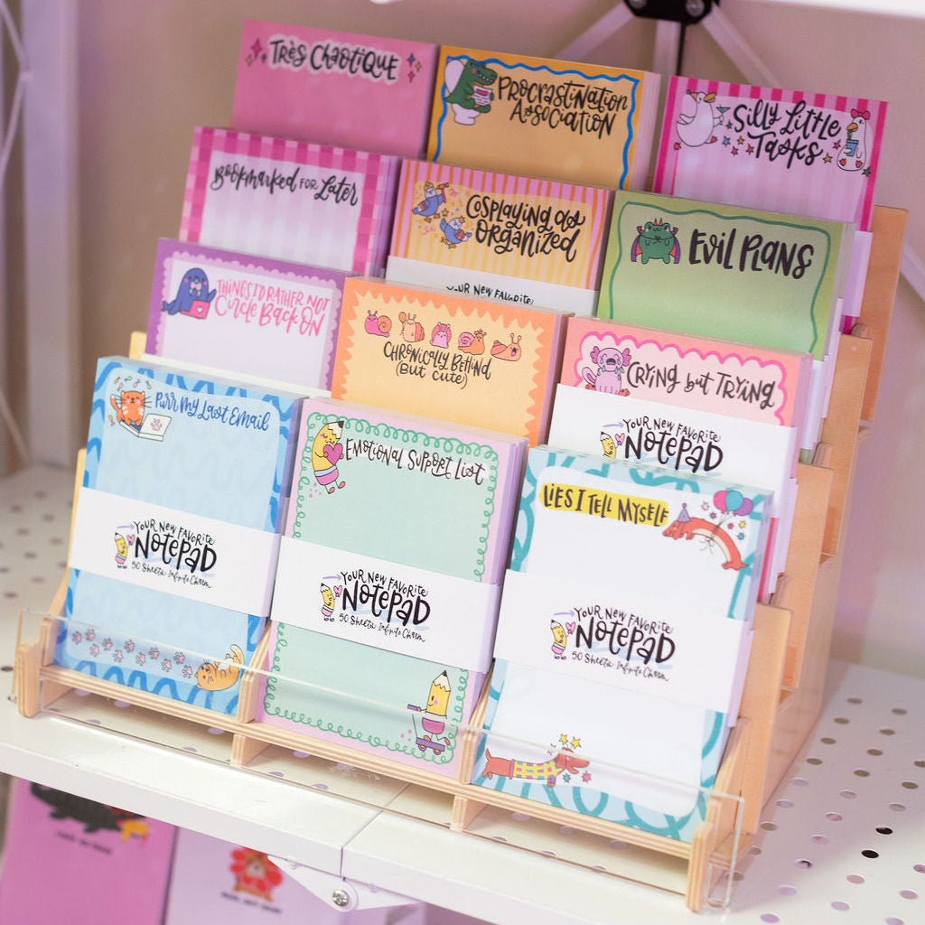 Oh sure, you’ll “just watch one episode.” You’ll “definitely start going to bed earlier.” This notepad gets it. Decorated with confetti-covered dachshunds who are clearly the life of the party, this design celebrates all the fibs we lovingly whisper to ourselves before doing the exact opposite. Perfect for jotting notes, plans, or other sweet delusions.