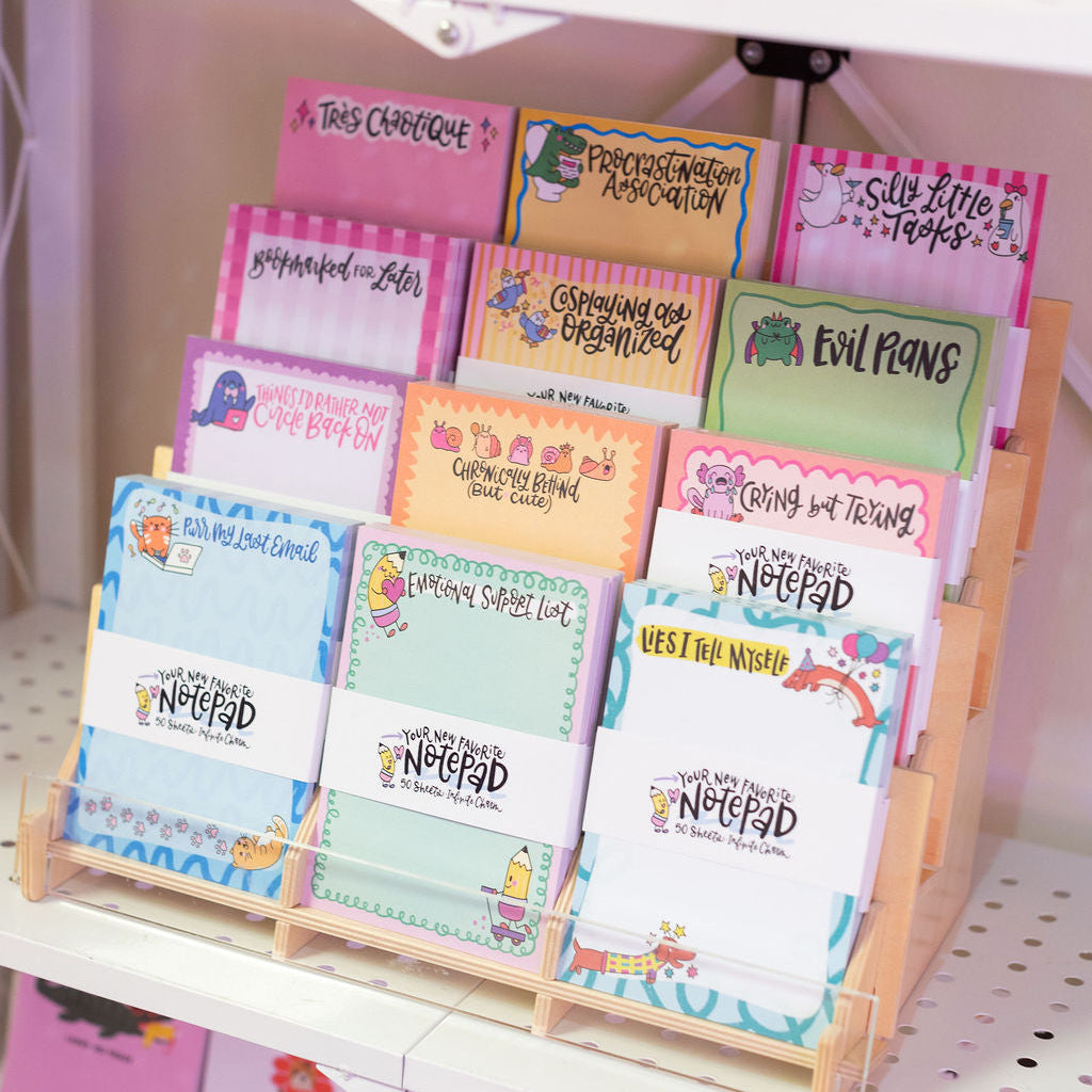 If your vibe is a strong mix of enthusiasm and disarray, this pink notepad has your name all over it. A full parade of capybaras (because chaos loves company) jam out along the bottom, cheering you through the mayhem. Embrace your mess and take notes like the adorable disaster you are.
