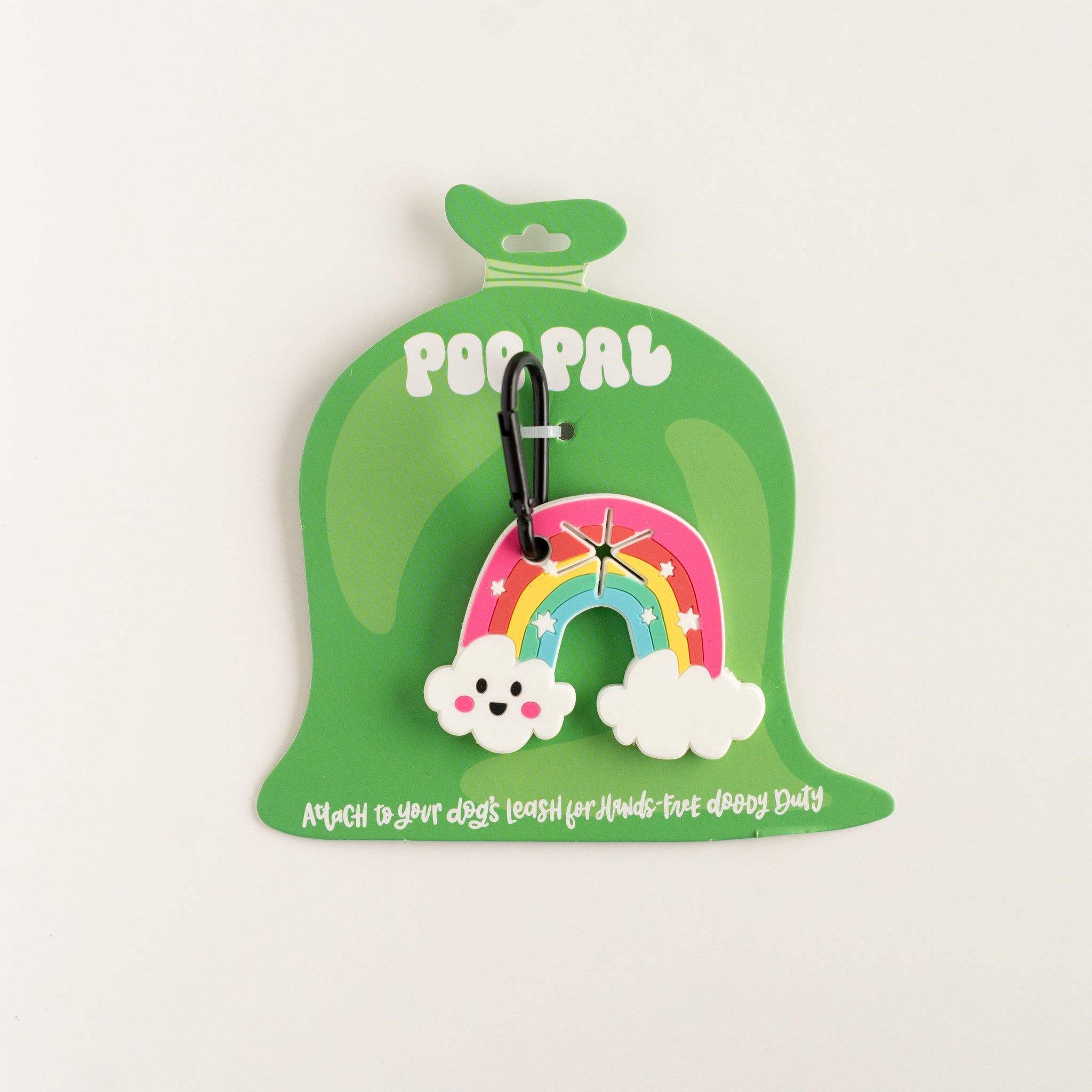 The Rainbow Business Poo Pal brings confident joy to everyday dog walks. Shaped like a bold, colorful rainbow, this leash accessory holds tied poop bags so you don’t have to, keeping your hands free while adding a bright pop of personality to your routine. Designed to pair beautifully with colorful leashes, collars, and bags, it’s cheerful without feeling over-the-top. Fully double-sided, it looks polished no matter which way it swings as you walk. Simply slip the knot of a tied waste bag through the center opening, clip it onto your leash, and let it carry the bag until you reach a bin. Made from durable yet flexible PVC rubber with a sturdy black metal carabiner, it’s built for daily use, easy cleaning, and standout shelf appeal.