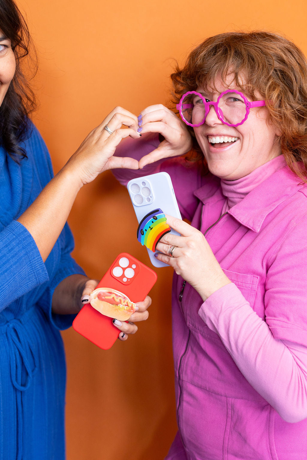 This colorful phone accessory features an adorable wide-eyed pup hanging onto a technicolor arc like your phone depends on it (because it kind of does). Equal parts chaos and charm, this Sticky Grip adds joy, stability, and personality to your everyday scroll.