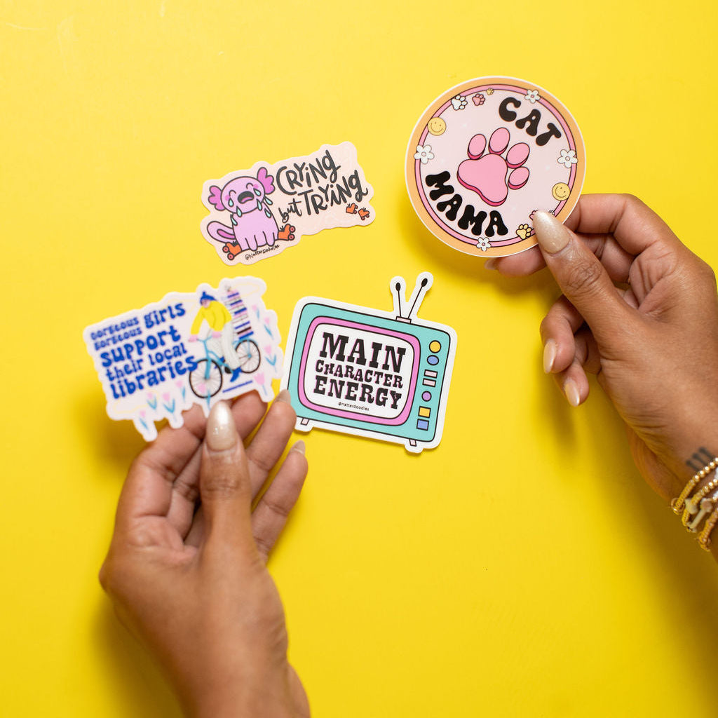 Celebrate bookworms, bike rides, and your local library with the Gorgeous Girls Support Their Local Libraries Sticker. This vibrant glitter vinyl decal features a stylish reader on a bicycle carrying a stack of books—an aesthetic reminder that libraries are where imagination begins. Whether you’re a student, lifelong reader, or someone who grew up getting lost in the stacks, this sticker is a colorful tribute to the places that fuel our curiosity.