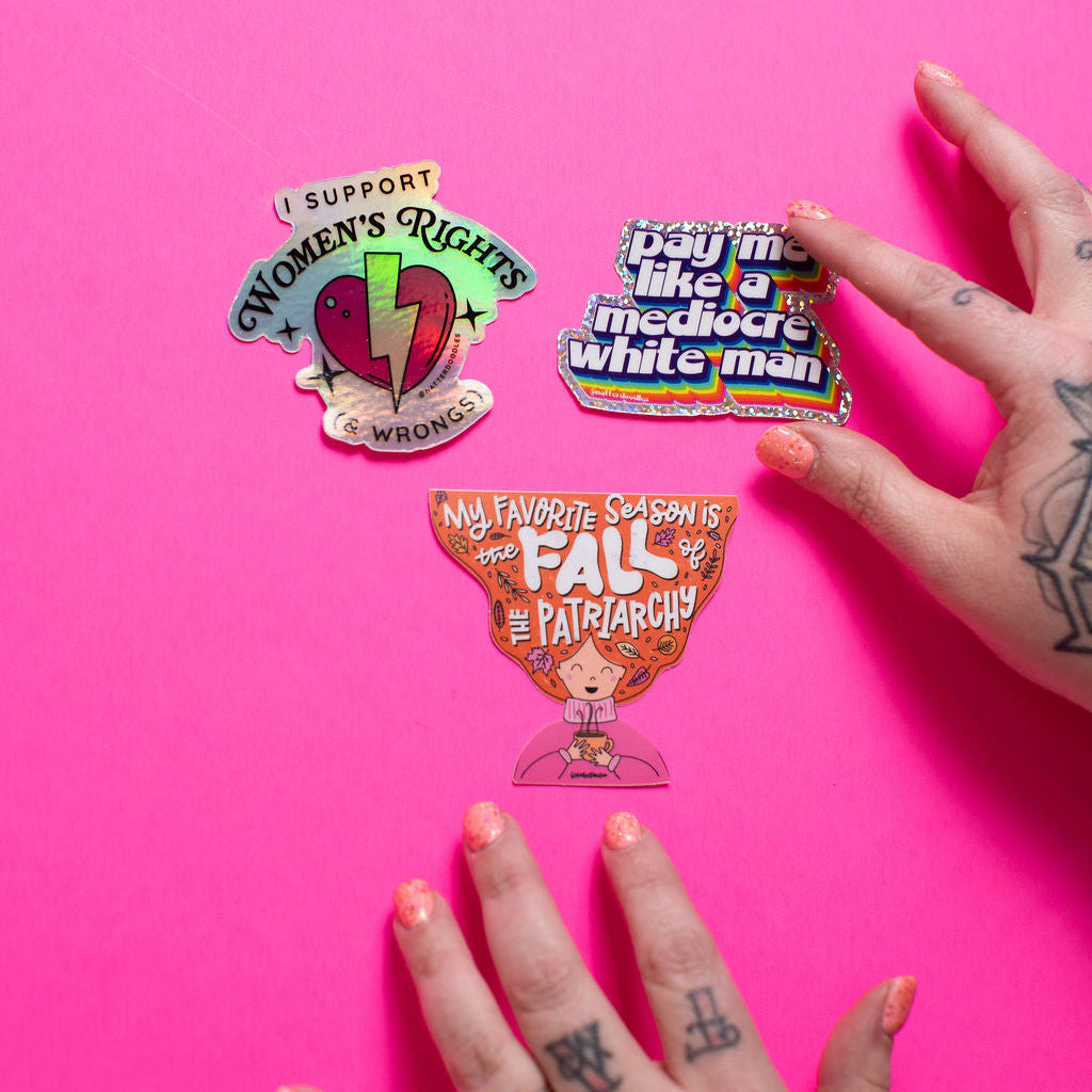 Stick it on your laptop, planner, office water bottle, workstation, or car window. Whether you’re clocking in at your 9-to-5, working freelance, or fighting the patriarchy from your favorite coffee shop, this sticker is the raise request they won’t forget.