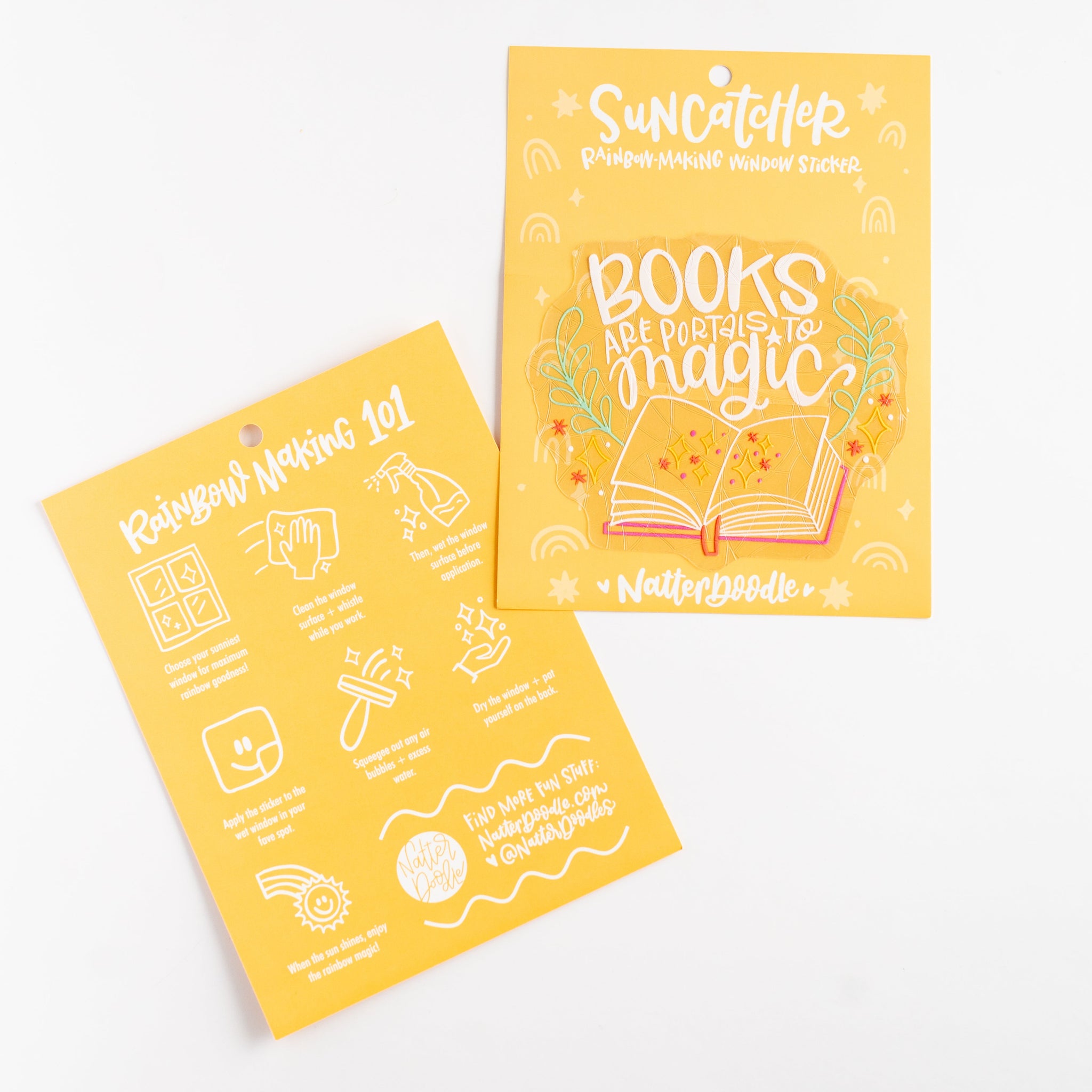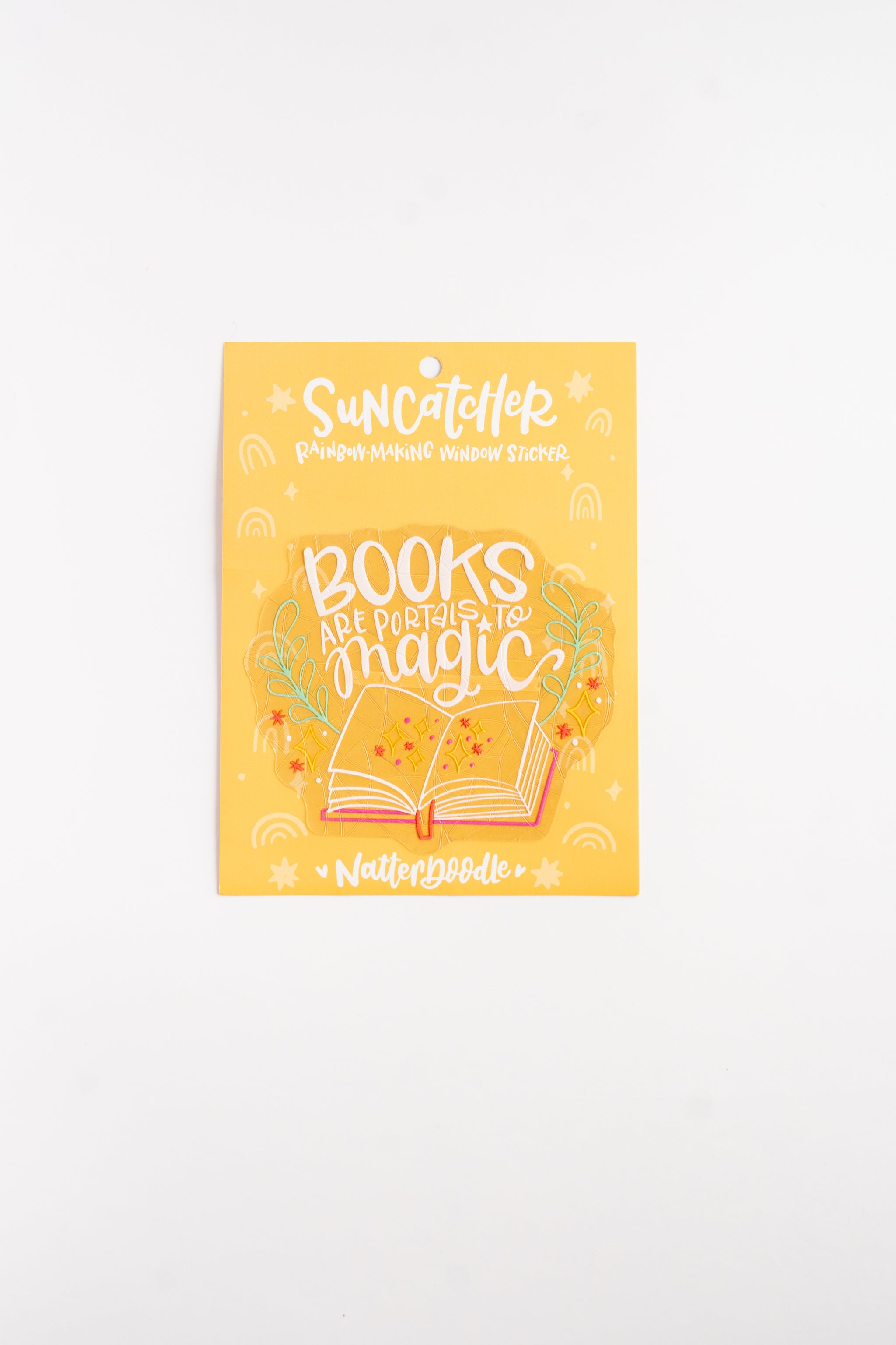 A suncatcher for the book lovers who disappear happily into stories. Place it in your reading nook and watch rainbow sparkles dance across your favorite spot. This enchanting open book is basically a magical portal disguised as a window sticker.