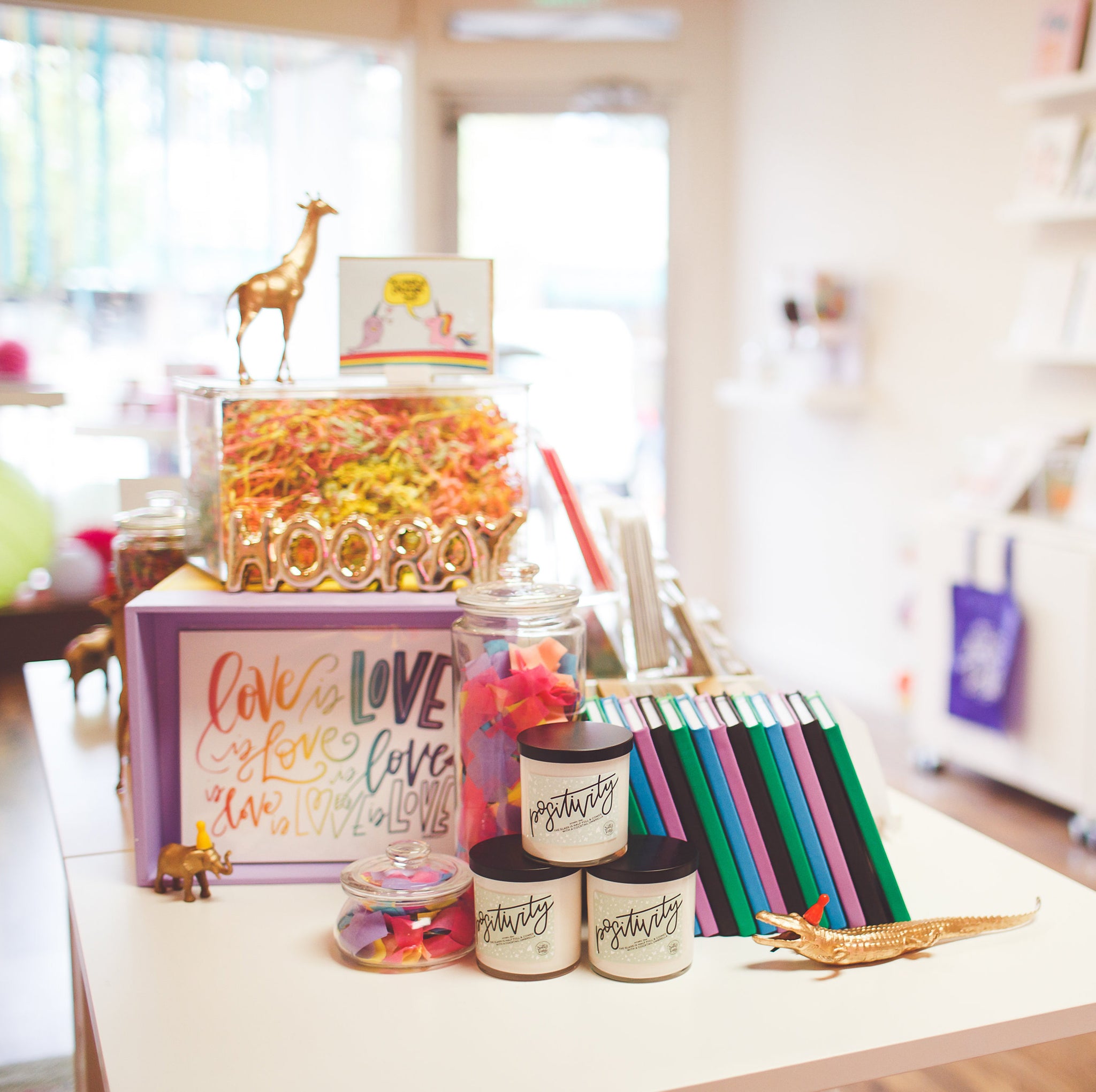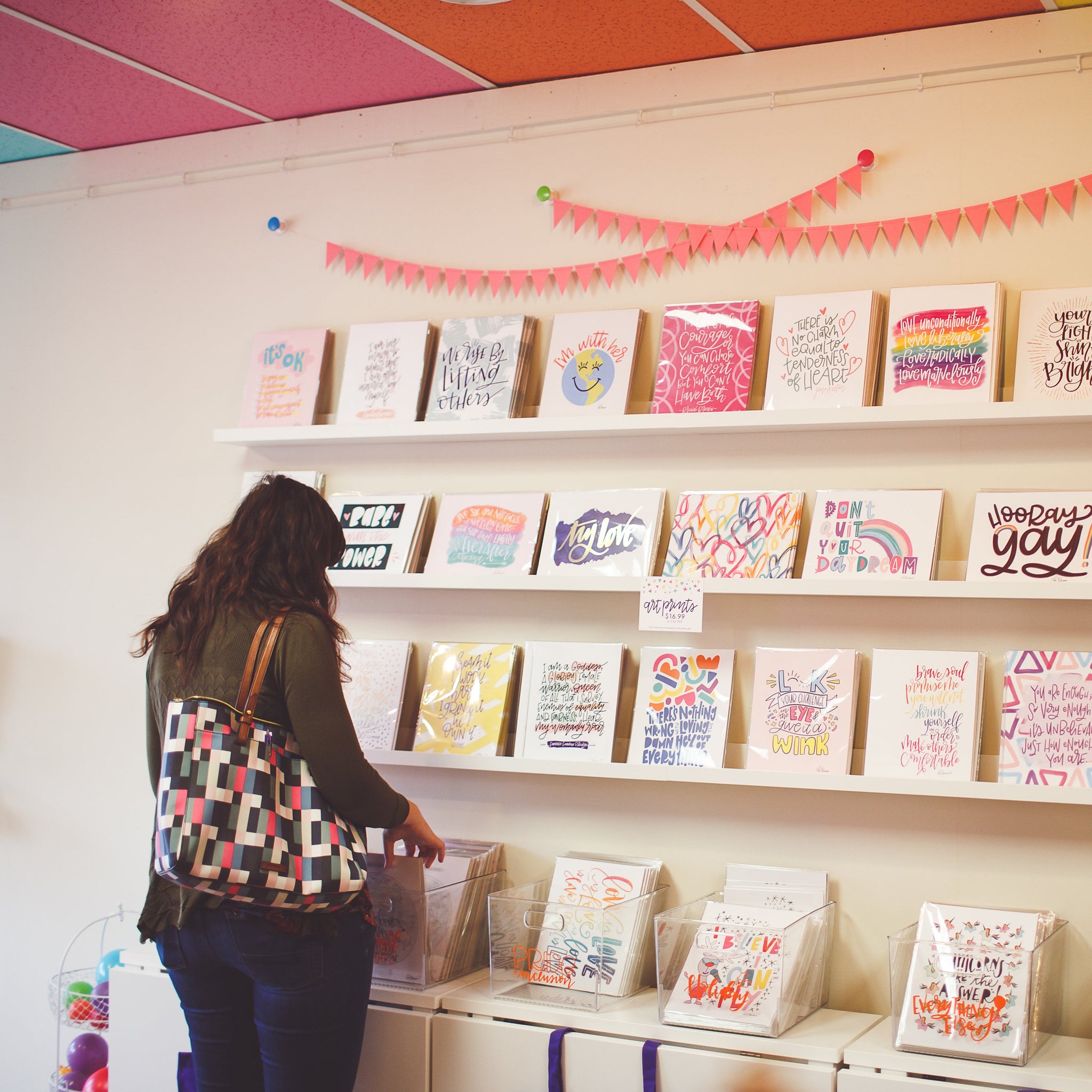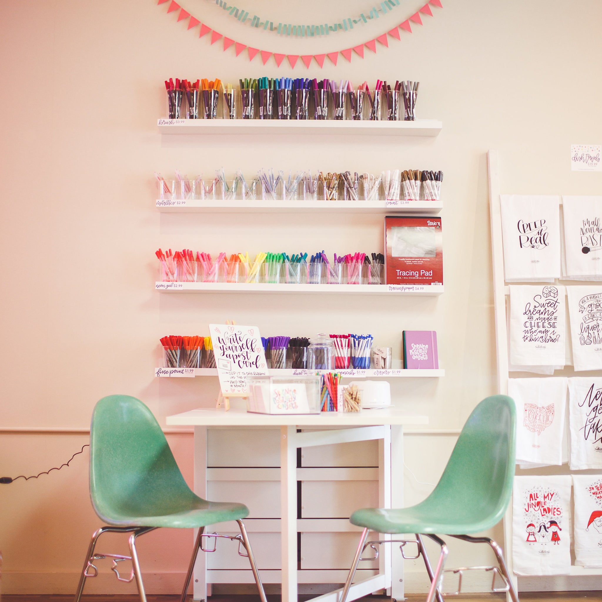 Make yourself a little party for your pocket with our confetti dispenser, shop our lovingly lettered gifts, browse our extensively stocked pen bar to select the perfect pen for your project, or ask established lettering artist Natalie for advice on your next piece!