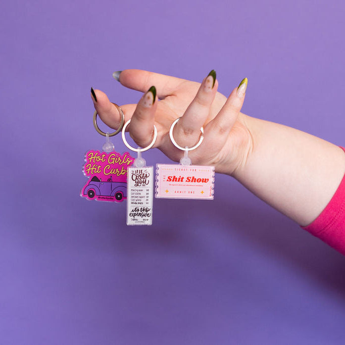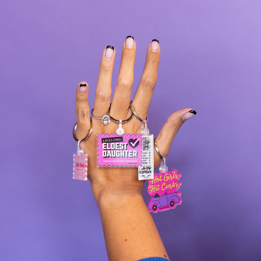 For the baddies with good taste and bad spatial awareness. This playful pink keychain celebrates all the hot girls who occasionally bump a curb but keep driving with confidence (and a perfect playlist).