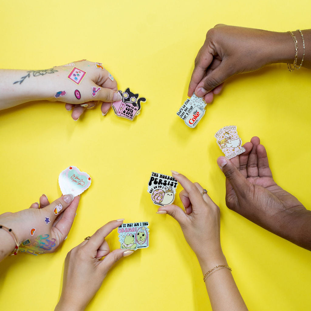 For the mischievous cutie who knows world domination starts with good vibes and great eyeliner. Featuring a black cat reading a pink book of chaos, this magnet is purr-fectly wicked.
