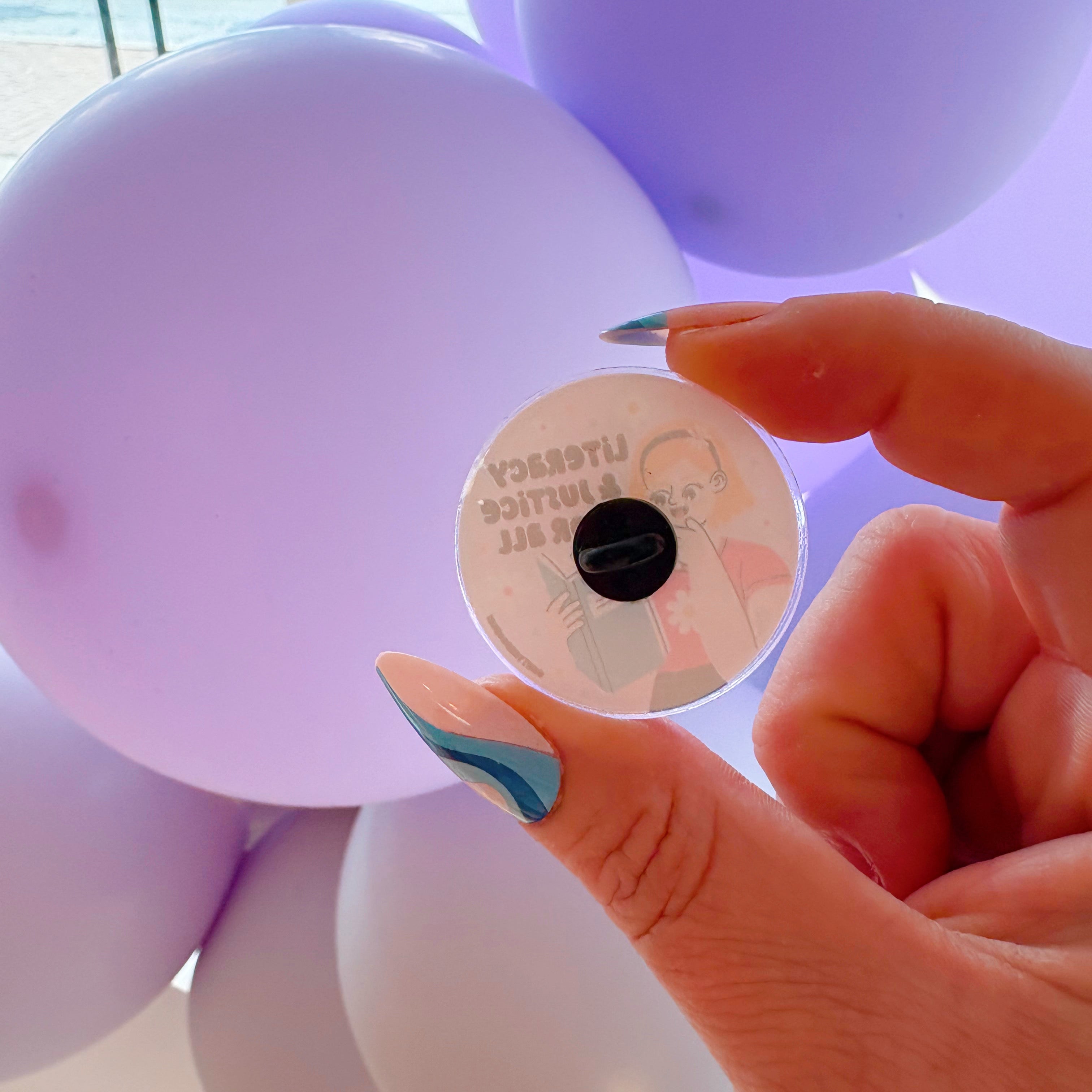 Each of these pins is crafted from durable, transparent acrylic and printed in vibrant full color. Perfect for adding a unique touch to your clothes, backpack, or accessories. The soft PVC clutch ensures a secure and comfortable fit, making it easy to wear your pin wherever you go. Approximately 1.5 inches.